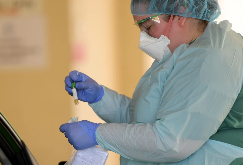 Một nhân viên y tế làm xét nghiệm tại trung tâm xét nghiệm COVID-19 ở Adelaide, Úc. Ảnh: GETTY