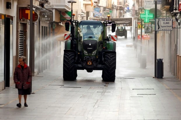Khử trùng đường La Bola ở TP Ronda, Tây Ban Nha. Ảnh: REUTERS