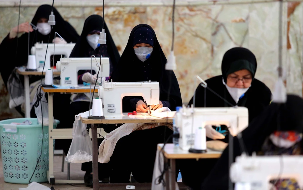 May khẩu trang và các vật dụng bảo hộ tại một nhà thờ ở Tehran (Iran). Ảnh: GETTY IMAGES