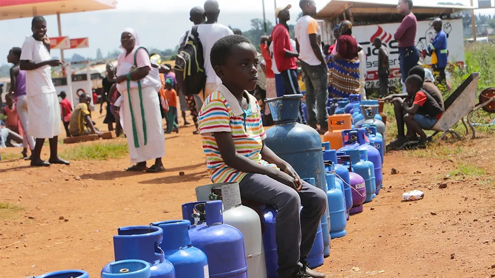 Một cậu bé ngồi trên bình gas nấu ăn ở Harare (thủ đô của Zimbabwe) sau khi Tổng thống Emmerson Mnangagwa nước này thông báo phong tỏa toàn quốc trong 21 ngày. Ảnh: AP