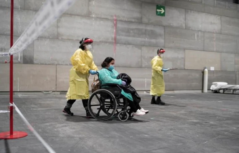 Bệnh nhân COVID-19 đến bệnh viện quân đội được thành lập tại trung tâm hội nghị IFema ở Madrid, Tây Ban Nha. Ảnh: REUTERS