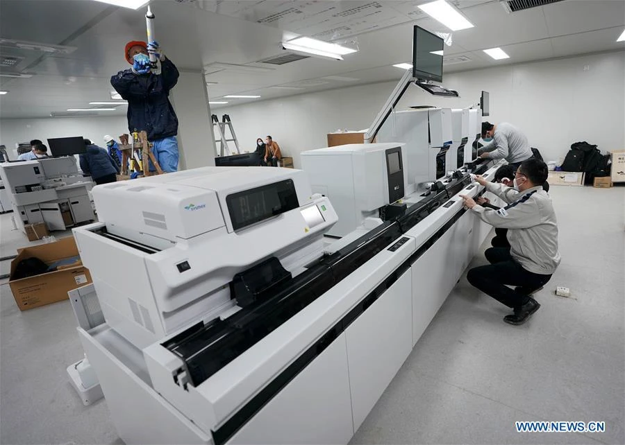 Nhân viên đang lắp đặt các thiết bị y tế để nhanh chóng đưa BV Lôi Thần Sơn vào hoạt động. Ảnh: NEWS CN