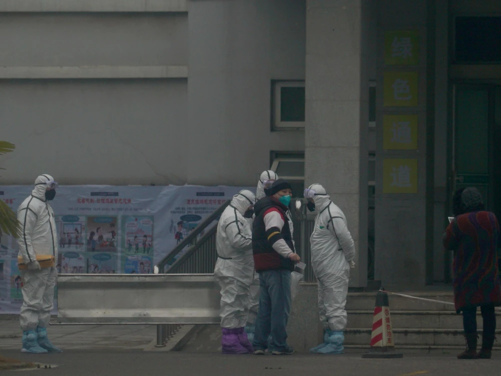 Các nhân viên y tế bên ngoài một bệnh viện ở Vũ Hán. Ảnh chụp ngày 5-2. Ảnh: AP