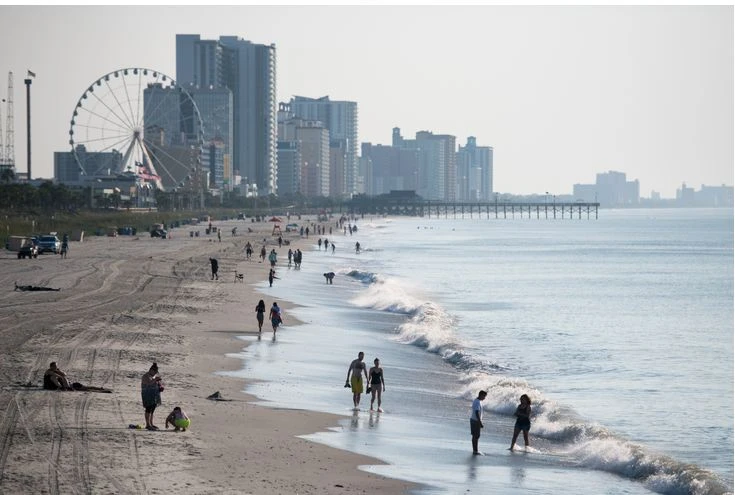 Rải rác người dân đi tắm biển tại bãi biển Myrtle ở bang South Carolina hôm 4-7. Ảnh: GETTY