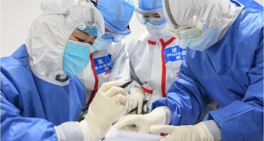 Nhân viên y tế kiểm tra thông tin của bệnh nhân ở Vũ Hán. Ảnh: Tân Hoa Xã