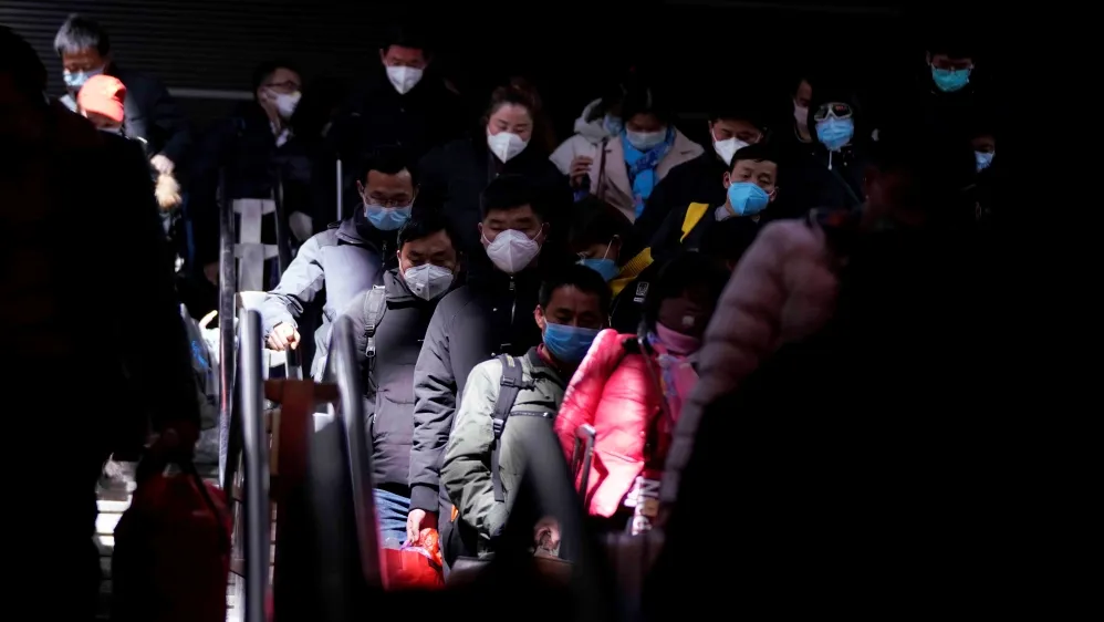 Hành khách đeo khẩu trang tại một nhà ga tàu lửa ở Thượng Hải, Trung Quốc. Ảnh: REUTERS
