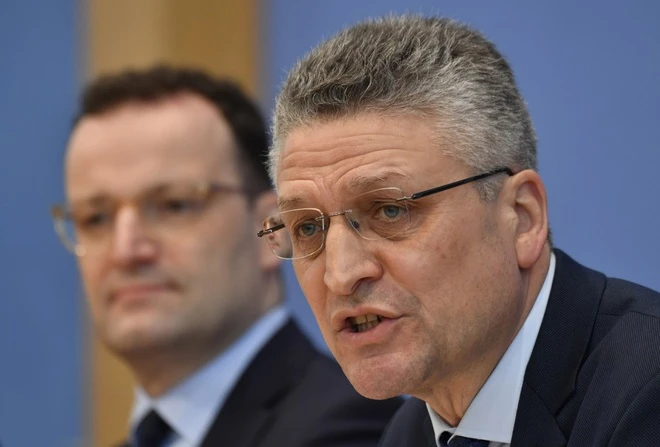 Lothar Wieler (phải), Chủ tịch Viện Robert Koch, tại cuộc họp báo ở Berlin ngày 2-3. Ảnh: AFP