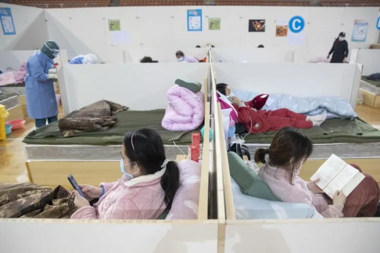 Bệnh nhân nhiễm virus COVID-19 điều trị tại bệnh viện Fangcang ở Vũ Hán, Trung Quốc. Ảnh: EPA-EFE