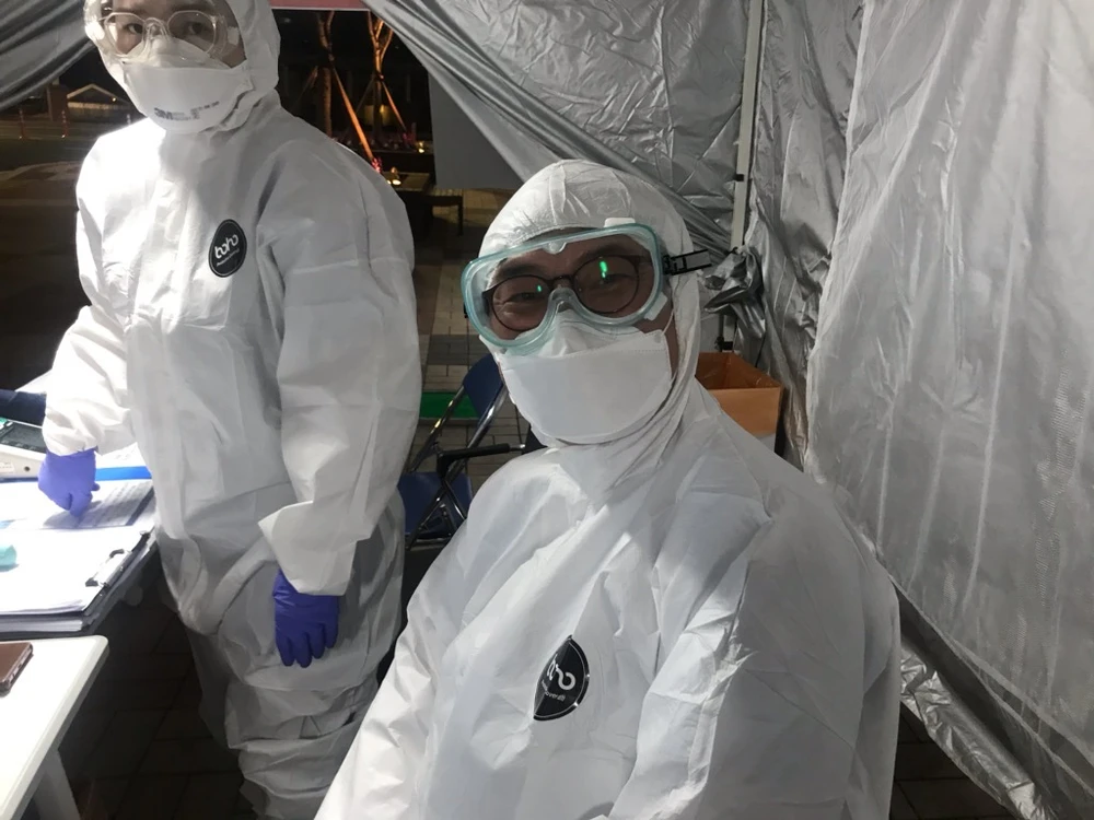 Một bác sĩ Hàn Quốc mặc đồ bảo hộ trong bệnh viện thuộc ĐH Keimyung ở Daegu. (Ảnh chụp ngày 4-3). Ảnh: THE KOREA HERALD