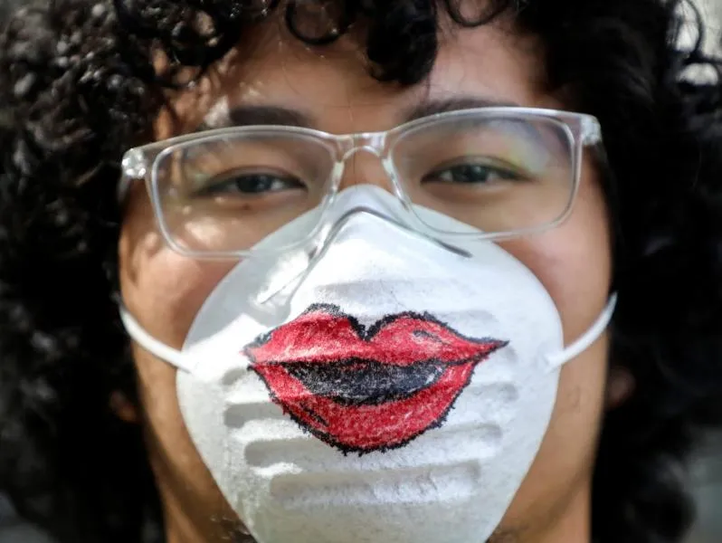 Một đàn ông đeo khẩu trang khi chúc mừng ngày Quốc tế phụ nữ 8-3 ở Kuala Lumpur (Malaysia). Ảnh: REUTERS