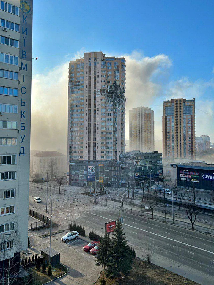 Theo thông tin từ Ukrinform thì đầu ngày 26-2 một tòa chung cư ở số 6a đường Lobanovsky ở thủ đô Kiev đã bị một tên lửa bắn trúng.