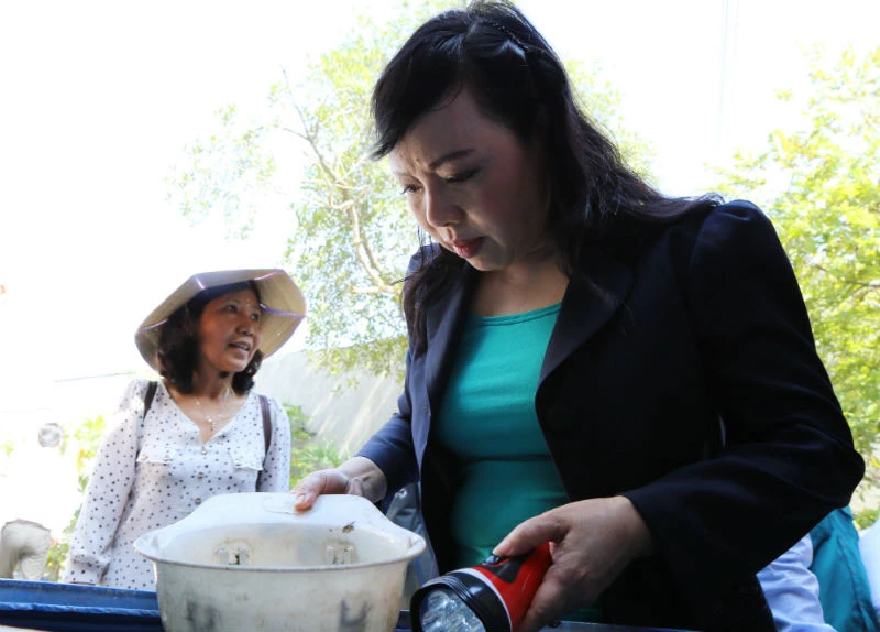 Bộ trưởng Bộ Y tế kiểm tra việc giết lăng quăng của hộ dân tại thị xã Thuận An.