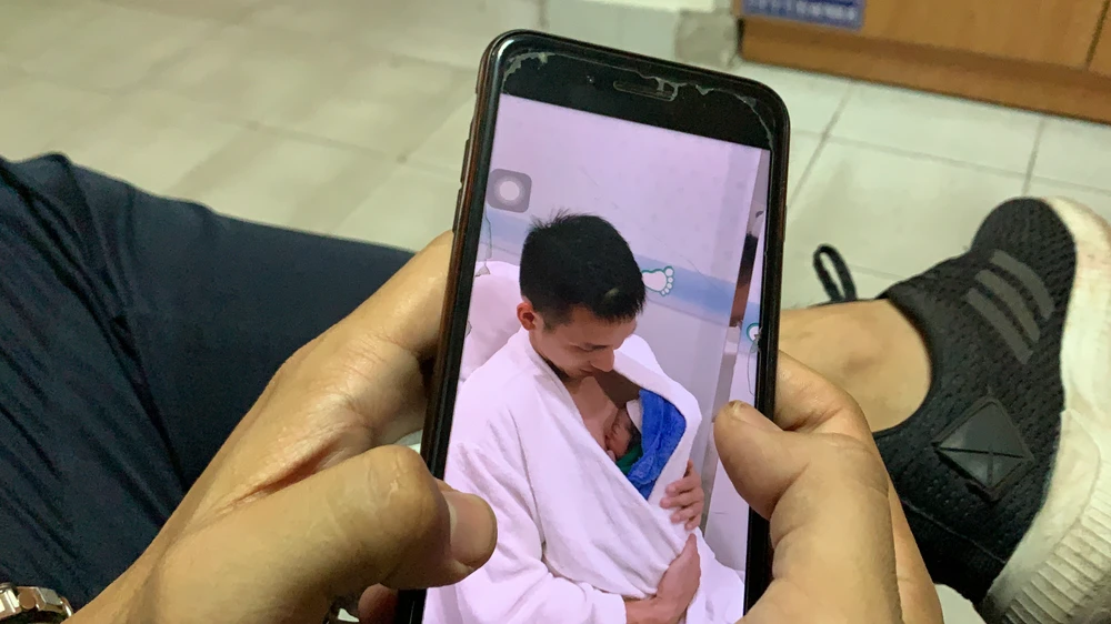 Cầu thủ Đỗ Hùng Dũng cùng niềm vui khi đón con trai đầu lòng. Ảnh: HL
