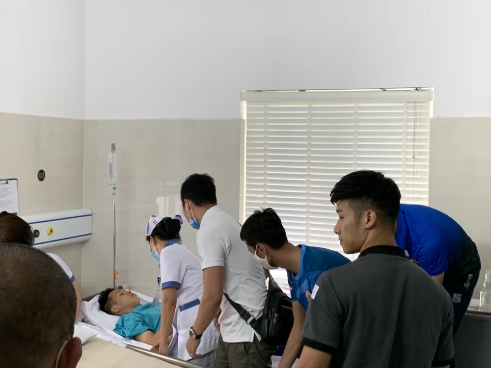 Cầu thủ Đỗ Hùng Dũng được đưa về phòng chăm sóc hậu phẫu sau ca phẫu thuật. Ảnh: HL