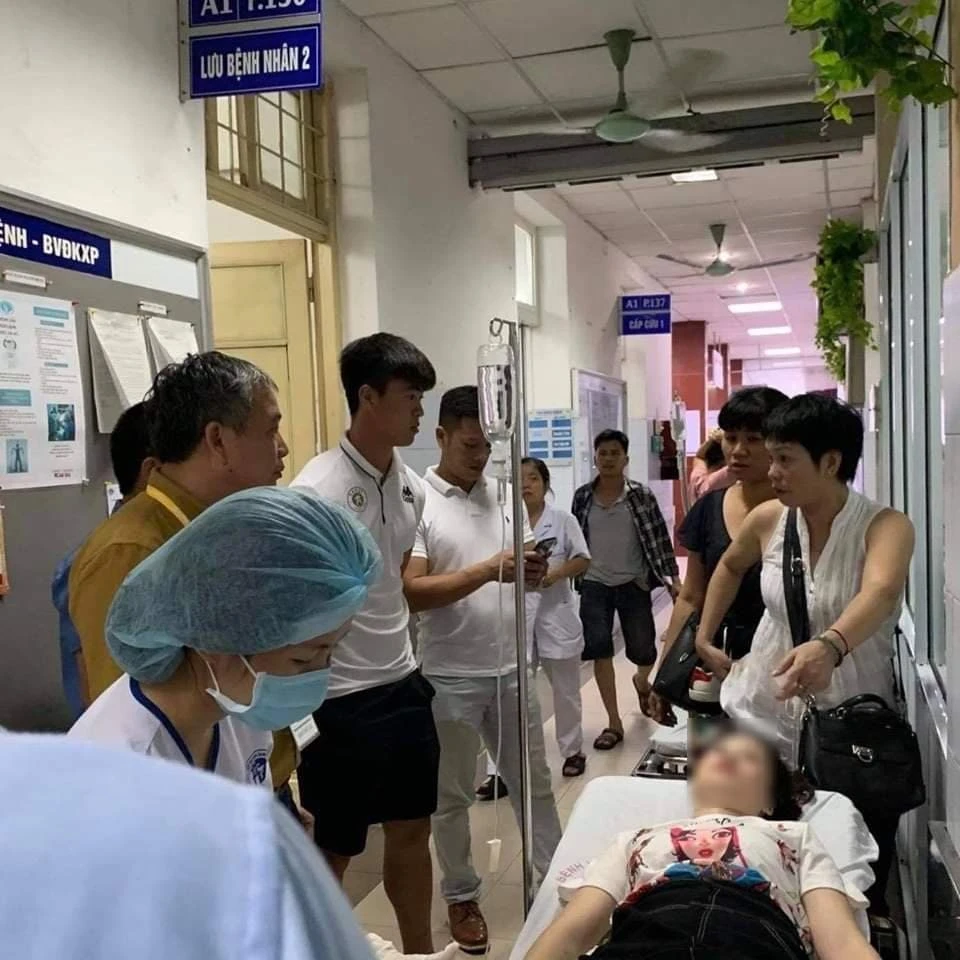 Nữ cổ động viên bị trúng pháo sáng tại sân vận động Hàng Đẫy (Hà Nội) đang được điều trị tại BV Xanh Pôn. Ảnh: BVCC