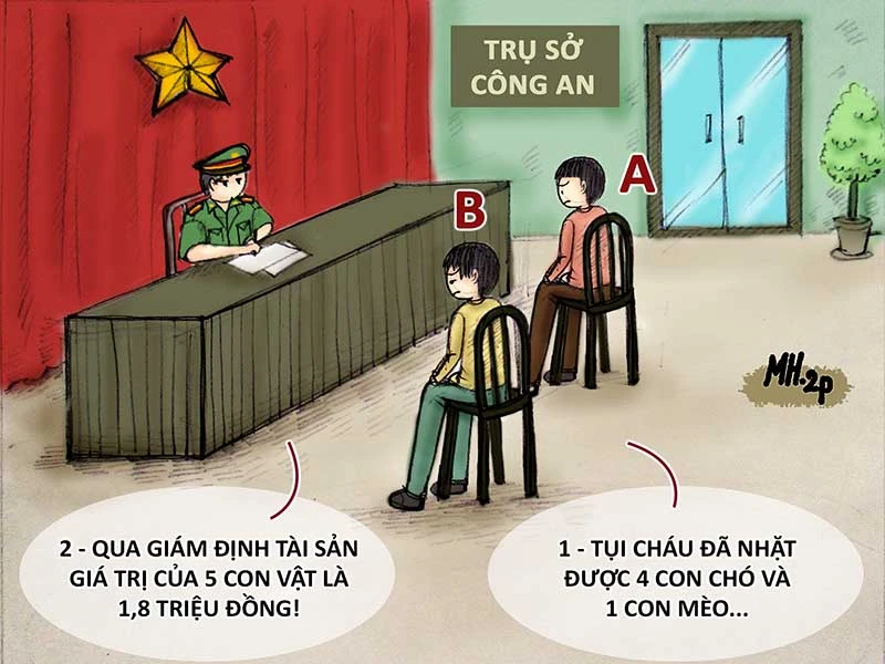 Tại cơ quan công an, A và B khai nhận đã bắt được tổng cộng bốn con chó và một con mèo. Sau khi giám định tài sản, giá trị của những con vật trên là 1,8 triệu đồng.
