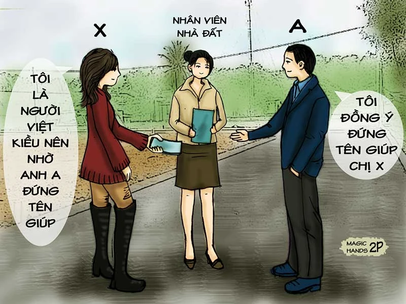 Chị X là Việt kiều muốn mua một mảnh đất tại Việt Nam nhưng chưa đáp ứng các điều kiện theo quy định của pháp luật nên đã nhờ anh A đứng tên giúp mình trên giấy chứng nhận quyền sử dụng đất (GCNQSDĐ). Theo như thỏa thuận, chị X mua một thửa đất ở một quận vùng ven TP.HCM với giá 500 triệu đồng dưới tên của anh A. Hai bên cũng viết với nhau một tờ cam kết về việc anh A đứng tên giúp trên GCNQSDĐ.