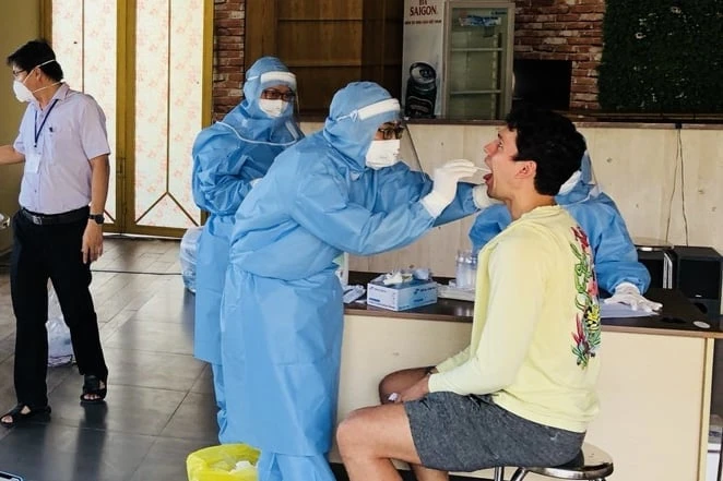 Nhân viên y tế đang lấy mẫu xét nghiệm COVID-19 cho các trường hợp F1, F2 tại quận 2, TP.HCM. Ảnh: TỰ SANG