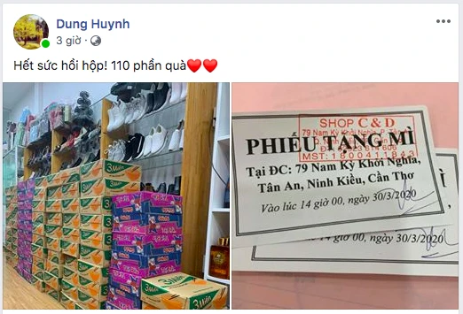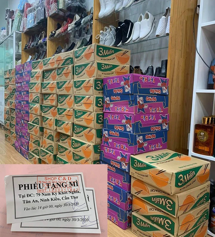 Chị Huỳnh Thị Thanh Dung, chủ một cửa hàng thời trang ở Cần Thơ, cũng chia sẻ nỗi khó khăn của bà con bán vé số với hơn 100 thùng mì gói.