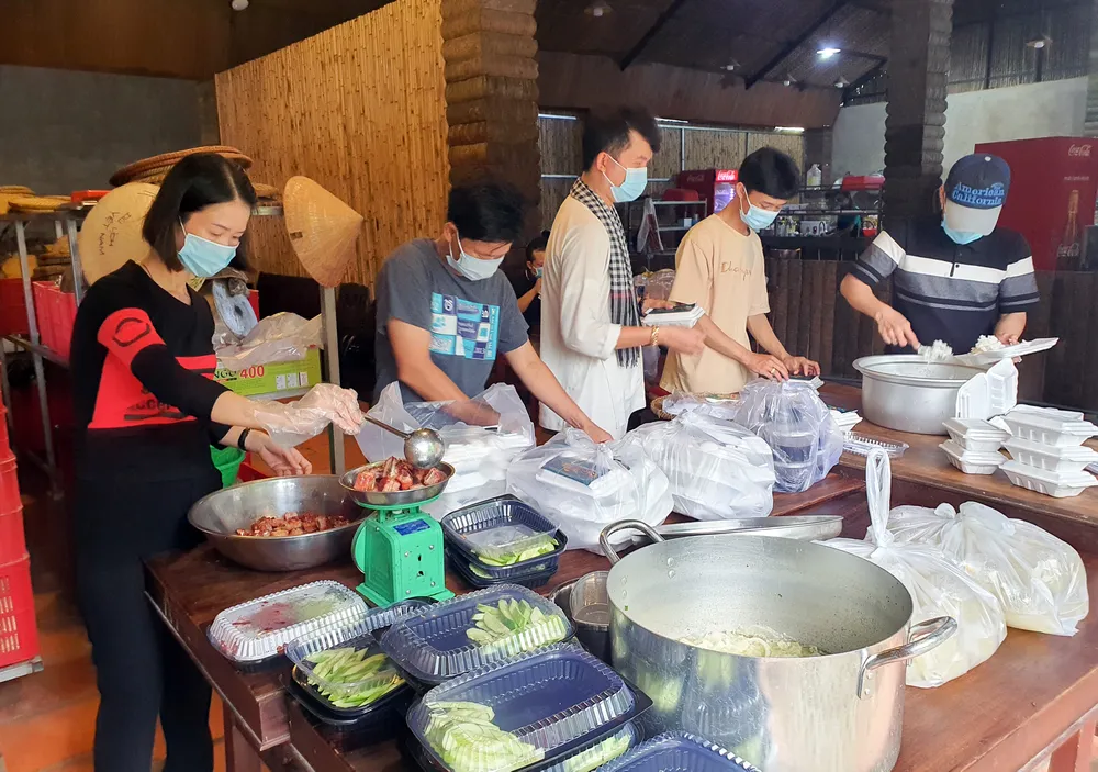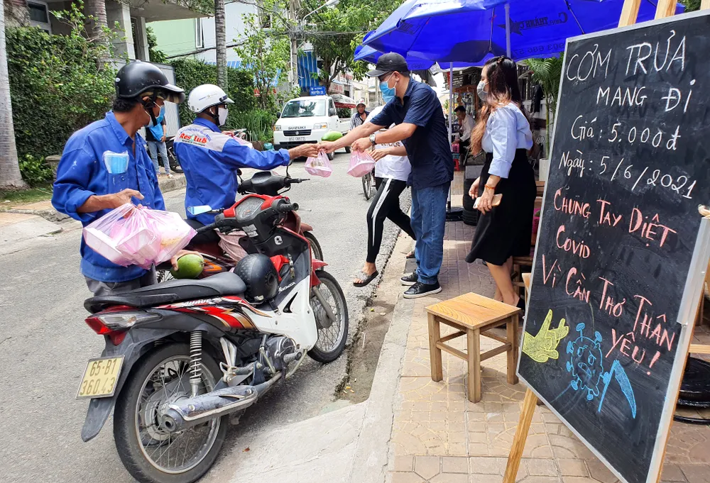 Cùng mục đích, quán ăn Quê Mình (quận Ninh Kiều) cũng tổ chức nấu cơm để tiếp sức cho lực lượng tình nguyện viên ở các điểm kiểm soát trên địa bàn TP. Theo anh Võ Văn Nam, nhân viên quản lý quán, từ ngày 10-5 khi dịch bệnh bắt đầu diễn biến phức tạp, quán đã tiên phong không bán tại chỗ mà chỉ bán online.