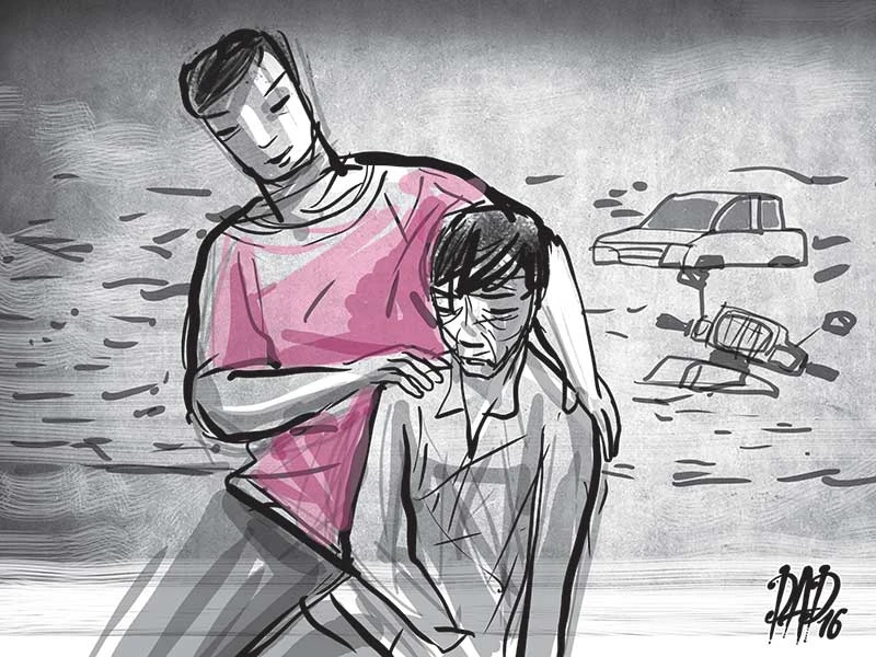 Chiều tối 26-9, trong cơn mưa như trút nước ở đường Điện Biên Phủ, Bình Thạnh, một cụ già bước từ xe buýt xuống, trượt té ngã quỵ trong vũng nước, trong khi chiếc xe buýt đã vội vọt đi. Ông cụ nằm dưới mưa giơ tay cầu cứu nhưng đường ngập nước, vắng tanh. Chợt có một cặp vợ chồng trẻ chạy tới vội dừng lại đỡ cụ lên nhưng ông cụ gần như tê cứng, không đứng dậy được, hỏi gì ông cũng không trả lời. Hai người gọi taxi nhưng tổng đài kẹt suốt, ngoắc taxi nhưng chiếc nào cũng có khách nên chạy luôn. Anh bèn bế ông cụ lên xe, bảo vợ ngồi sau giữ chặt cho anh chở ông vào bệnh viện.
