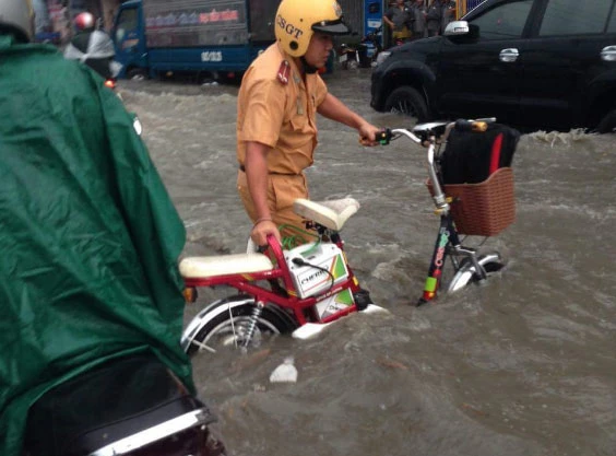 Trong cơn mưa xối xả, đường phố nước lại ngập lênh láng thì đâu đó xuất hiện nhiều hình ảnh người dân tự nguyện giúp đỡ lẫn nhau khi gặp sự cố trên đường.