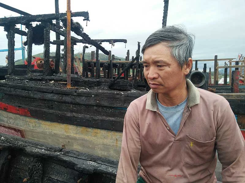 Dù con tàu mình bị thiêu rụi đang được tiến hành sửa chữa lại nhưng anh Lê Hồng Hải (xã Phổ Quang, huyện Đức Phổ) vẫn như người mất hồn khi kể lại sự việc hôm đó. Khi nghe bà con hô hoán, gia đình anh cũng có mặt để tiến hành dập lửa cứu tàu nhưng như anh nói: “Cứu lửa chỉ như muối bỏ biển”. Lửa cháy nhanh rồi lan ra hai tàu bên cạnh là tàu của anh Trọng và ông Trần Thơm gây thiệt hại tổng cộng trên 3 tỉ đồng.
