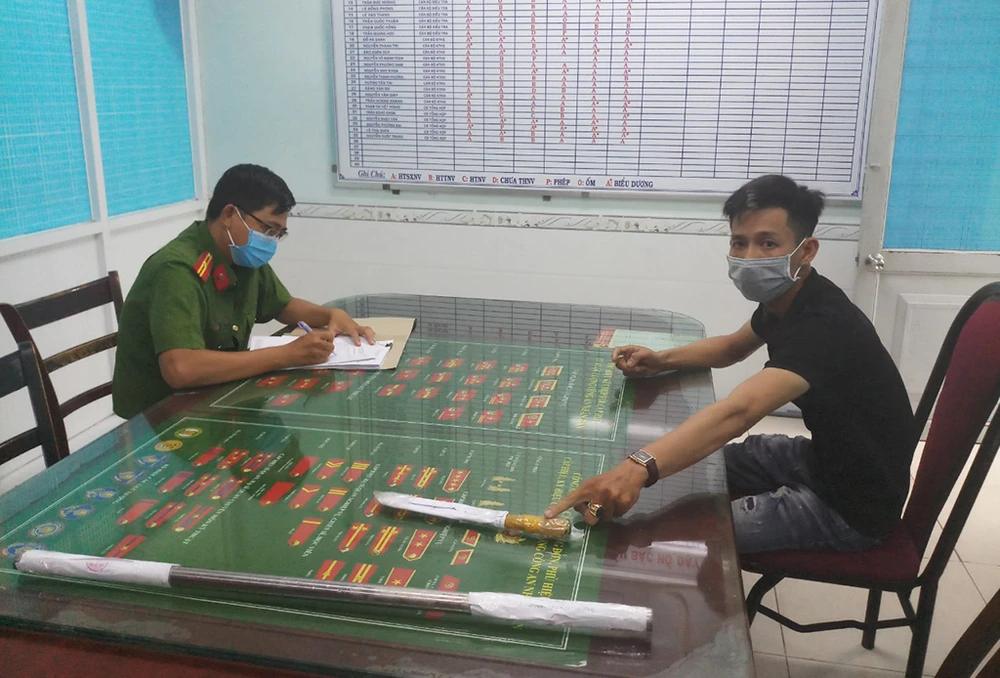 Công an đã lấy lời khai, trích xuất hình ảnh từ camera an ninh và thu giữ cây tuýp sắt dài 87cm và một con dao dài 30cm.
