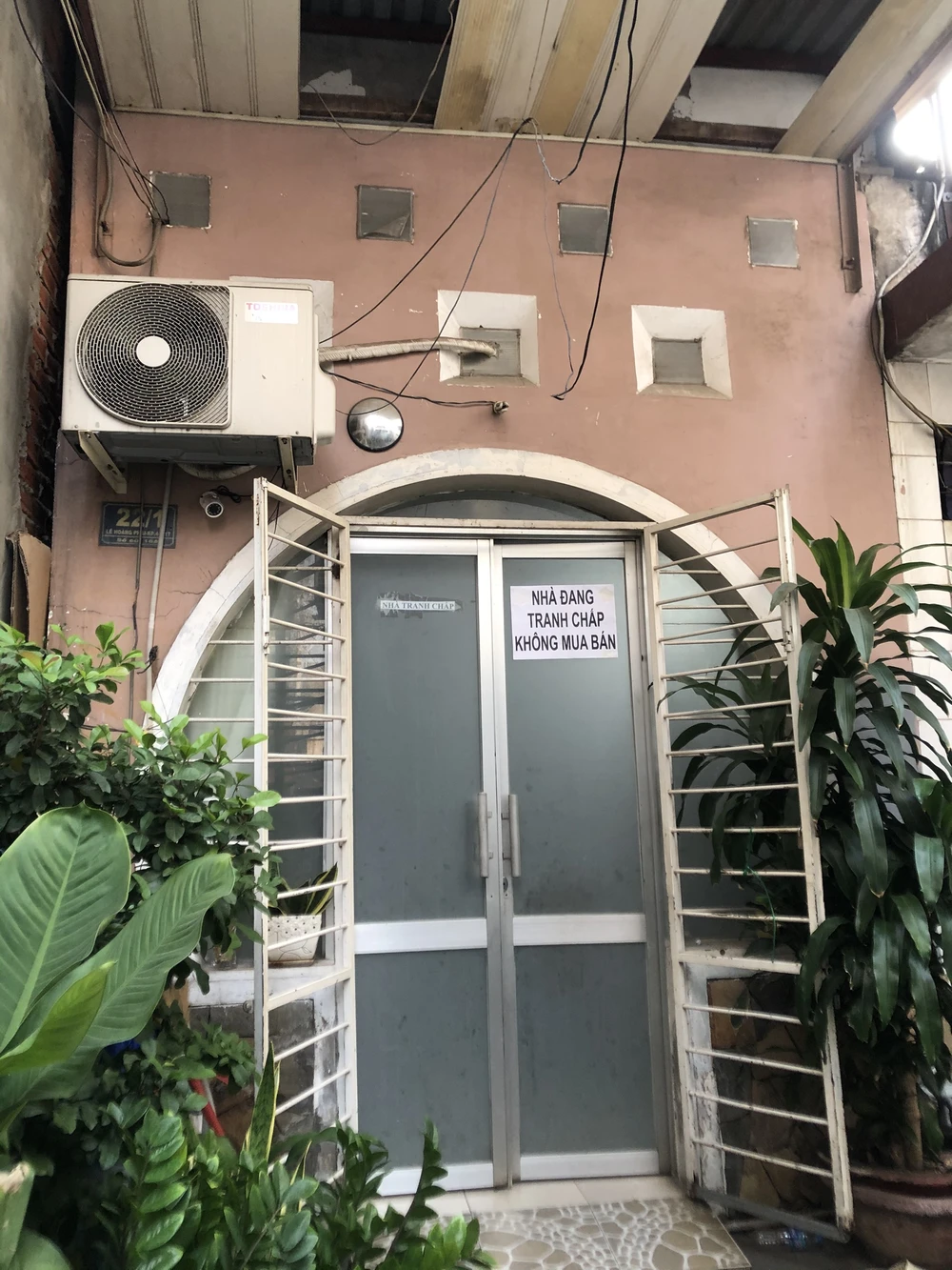 Bà Liên dán chữ nhà đang tranh chấp trước cửa. Ảnh: YC