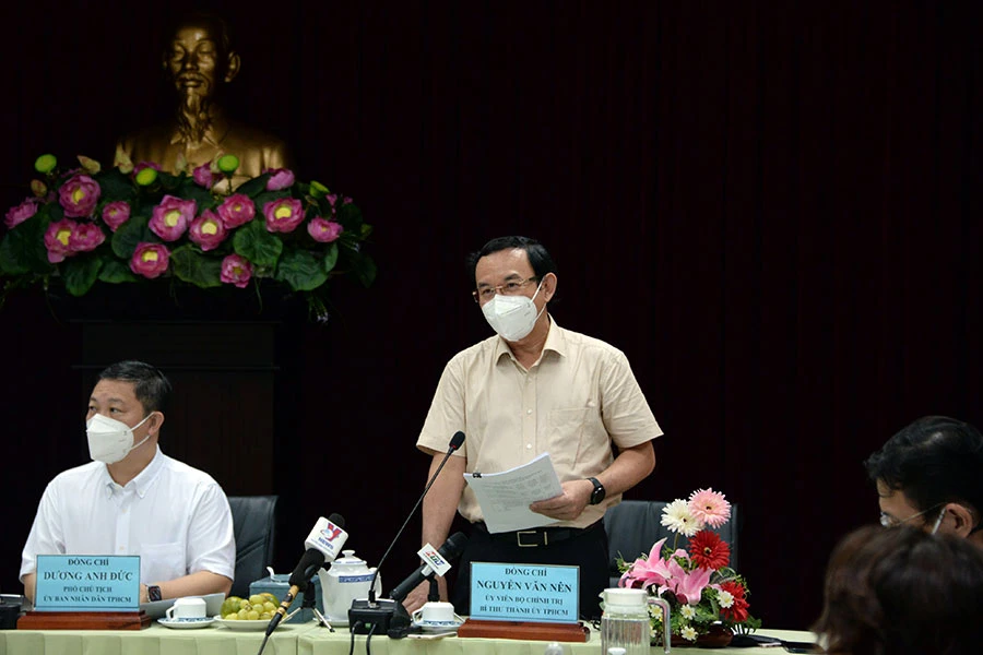 Trong thời gian tới, Bí thư Thành ủy Nguyễn Văn Nên đề nghị Sở Y tế tập trung giải quyết các vấn đề ban đầu của khu cách ly tập trung người lao động mắc COVID-19. Trong đó, cần bổ sung kịp thời các loại thuốc điều trị COVID-19.