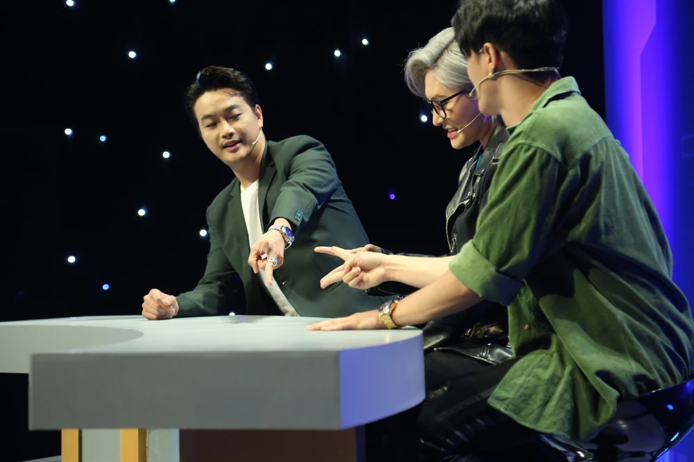 Nhạc sĩ Nguyễn Hồng Thuận cũng lên tiếng: “Còn bây giờ anh thấy Huy và Duy giống như bạn chơi gameshow với nhau vậy đó”, khiến các khách mời đều bật cười.