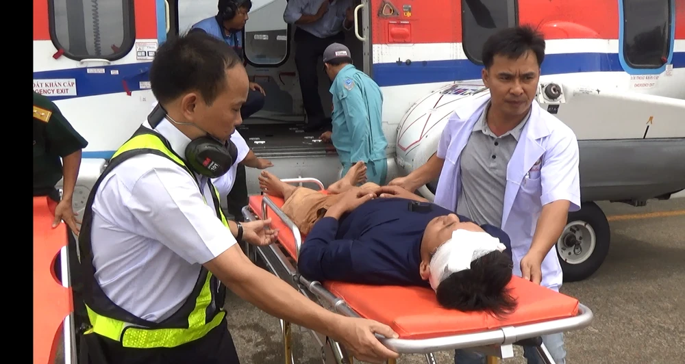 Đúng 3 giờ sáng 17-9, tổ cấp cứu đường không của bệnh viện cùng kíp bay của Công ty Bay dịch vụ miền Nam đã thực hiện chuyến bay. Đến 6 giờ sáng, máy bay có mặt tại đảo Phan Vinh, các y bác sĩ tiến hành hồi sức cấp cứu cho bệnh nhân. Đến 9 giờ sáng cùng ngày thì đưa bệnh nhân về BV Quân y 175 TP.HCM tiếp tục cấp cứu.