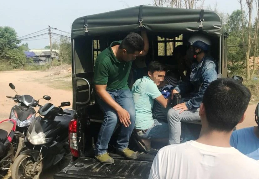 Công an đưa các nghi phạm về trụ sở để tiếp tục điều tra. Ảnh: C.A