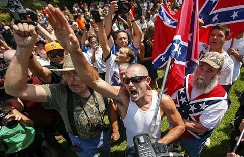 Tổng cộng có khoảng 2.000 người tham gia. Đông đảo cảnh sát được triển khai. Nhóm Ku Klux Klan hát hò, hô khẩu hiệu (ảnh). Một số người vẫy cờ Liên minh miền Nam và cờ chữ thập ngoặc. Sau đó nhóm này kéo đến công viên. Nhóm phản biểu tình đi theo. Va chạm xảy ra. Năm người bị bắt. 23 người bị thương.