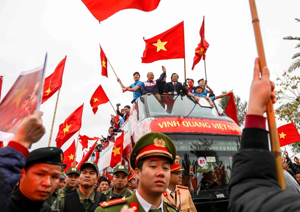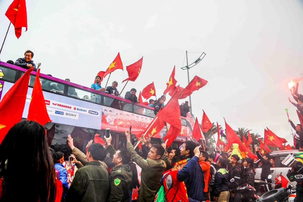 Hình ảnh các cầu thủ U-23 Việt Nam trở về sau khi giành ngôi á quân U-23 châu Á vào tháng 1 vừa qua. ẢNH: HUY PHẠM.
