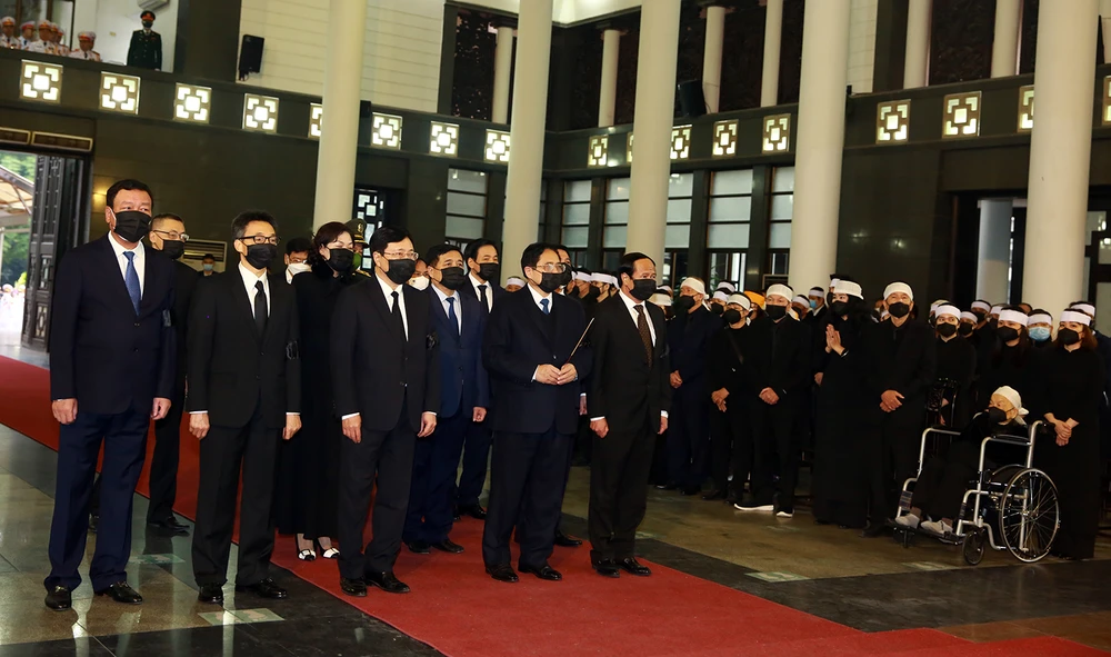 Thủ tướng Phạm Minh Chính dẫn đầu Đoàn đại biểu Chính phủ nước CHXHCN Việt Nam viếng ông Nguyễn Côn. Ảnh: VGP