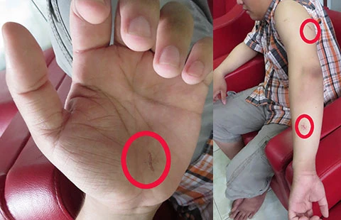 Trao đổi với chúng tôi, anh Đạt cho biết đã đỡ năm nhát dao của Nghĩa, trong đó có một nhát đâm ngập vào lòng bàn tay gây tổn thương dây thần kinh khiến hai ngón tay không cử động được nhưng chưa thấy công an xử lý gì với Nghĩa.