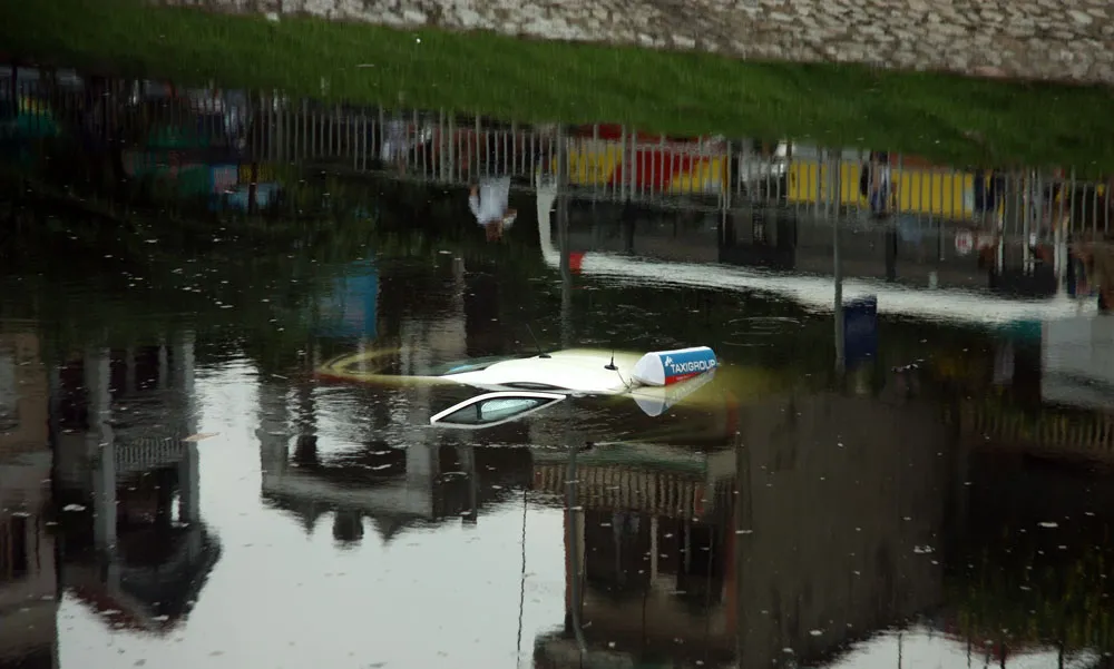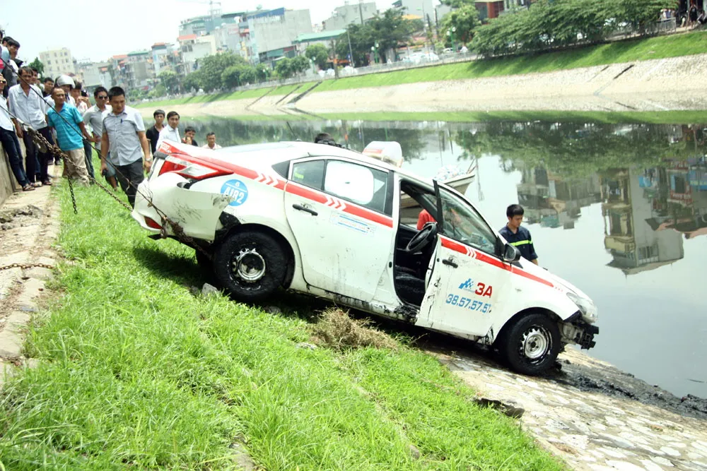 Người đàn ông trên 30 tuổi do không biết lái nên đã đạp nhầm chân ga khiến xe ô tô lao vọt sang vỉa hè va phải một người đi xe máy đỗ bên đường khiến người đàn ông bị thương nhẹ. Tiếp đó, húc đổ lan can vỉa hè và lao xuống sông Tô Lịch.