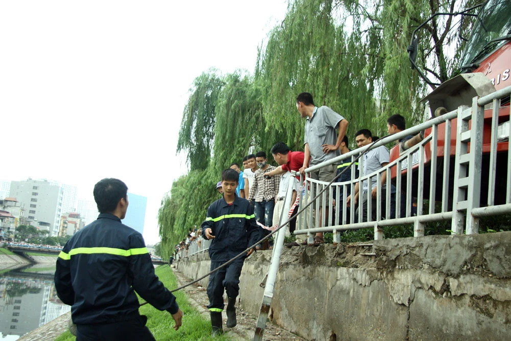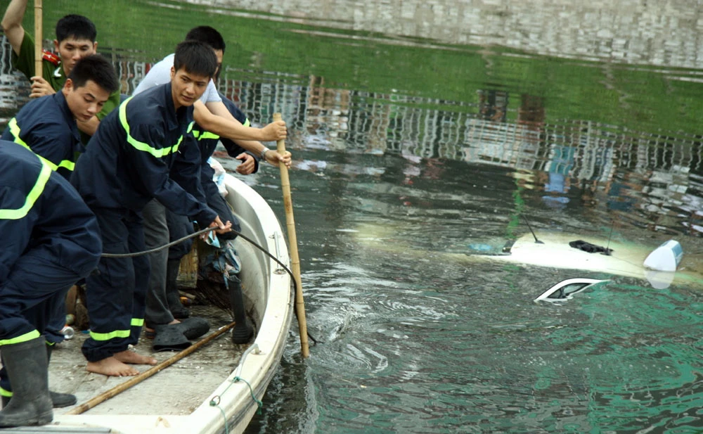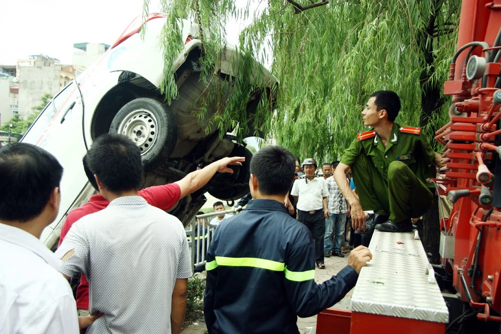 Ngay sau khi xảy ra sự việc, lực lượng cảnh sát giao thông, công an phường có mặt tại hiện trường. Đến 12h cùng ngày, 2 xe cứu hộ và 1 cần cẩu được điều tới hiện trường để kéo chiếc xe ô tô lên. Đến 13h, chiếc xe ô tô được kéo lên bờ.