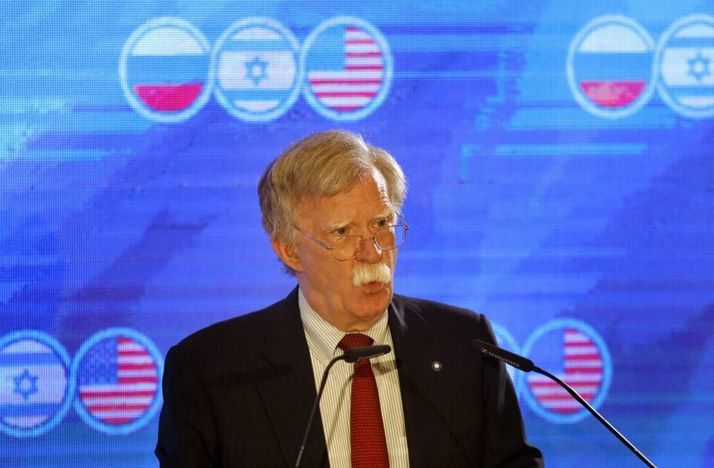 Cố vấn An ninh quốc gia Mỹ John Bolton phát biểu tại hội nghị thượng đỉnh ba bên gồm các cố vấn an ninh quốc gia Mỹ, Israel và Nga, tại Jerusalem ngày 25-6. Ảnh: AFP