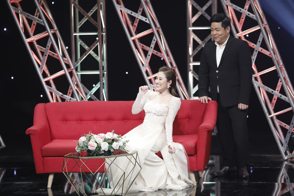 Tố My bất ngờ khi Quang Lê xuất hiện. Ảnh: JET