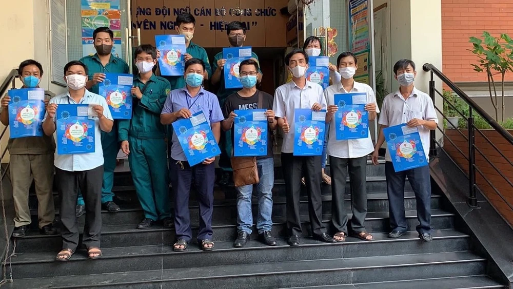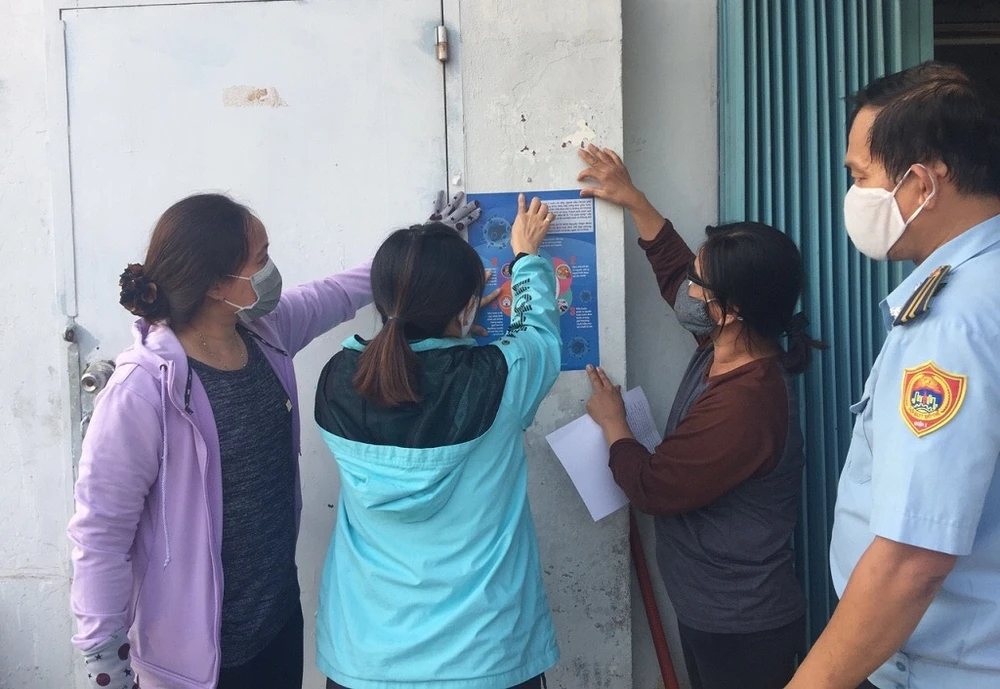 Phường Cầu Kho, quận 1 với 3.500 tờ rơi đang được chuyển đến người dân. Các tổ công tác còn dán ở những nơi công cộng để người dân xem. Ảnh: LT
