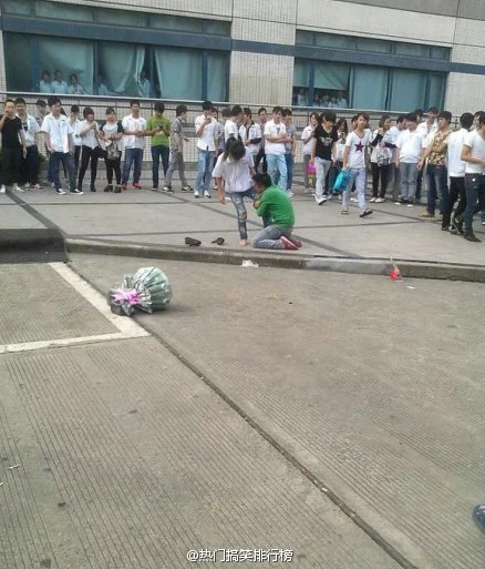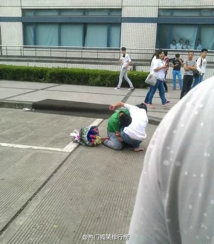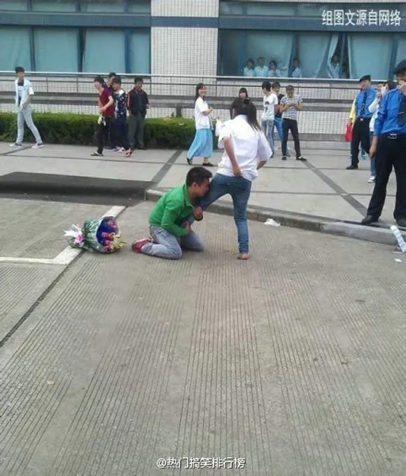 Những ngày qua, loạt ảnh ghi lại cảnh 1 chàng trai liên tục ôm chân bạn gái sau khi bị từ chối lời tỏ tình đã được chia sẻ chóng mặt trên trang Weibo - trang mạng xã hội lớn nhất của Trung Quốc.