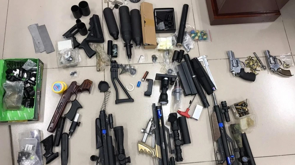 Bên cạnh đó, cơ quan công an còn phát hiện rất nhiều linh kiện để chế tạo súng như: lò xo ruột súng, nòng súng, báng súng, ống giảm thanh, buồng hơi khí nén...