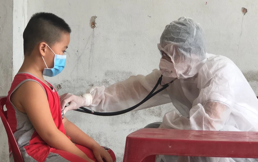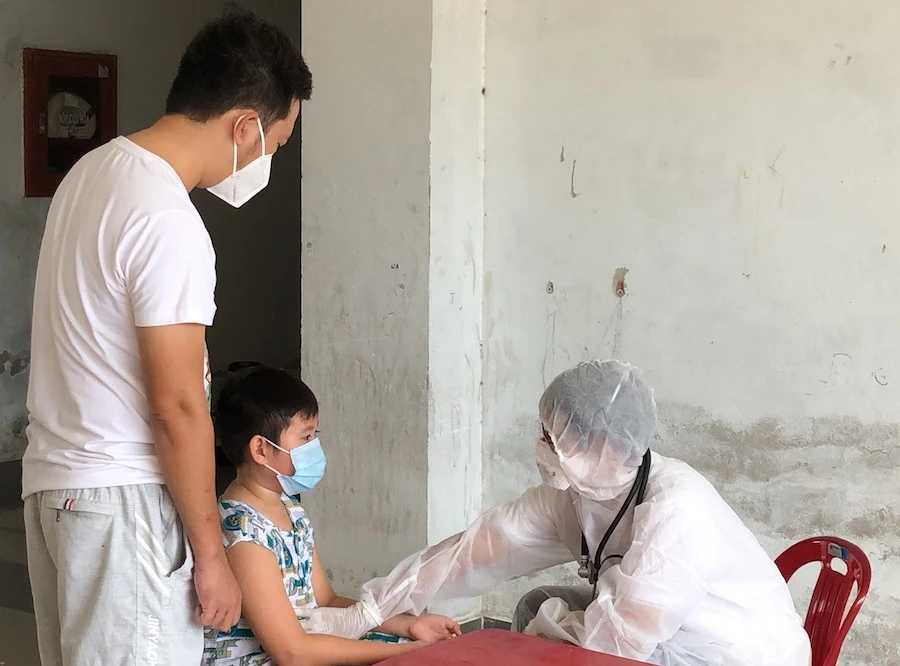 Bác sĩ Năm, Tổ trưởng y tế cộng đồng tổ 90 đang thăm khám cho trẻ nhỏ. Ảnh: LÊ PHI.