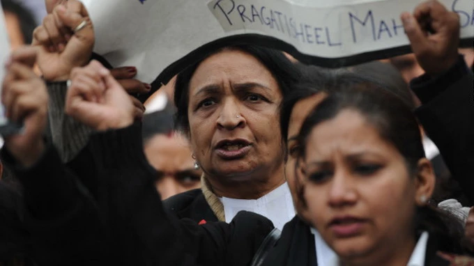 Các luật sư biểu tình trước lối vào tòa án quận Saket ở New Delhi hồi tháng 1-2014 - Ảnh: AFP