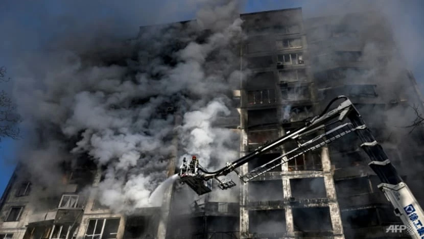 Một tòa nhà chung cư bị hư hại nặng sau các cuộc không kích của Nga ở thủ đô Kiev, Ukraine. Ảnh: AFP