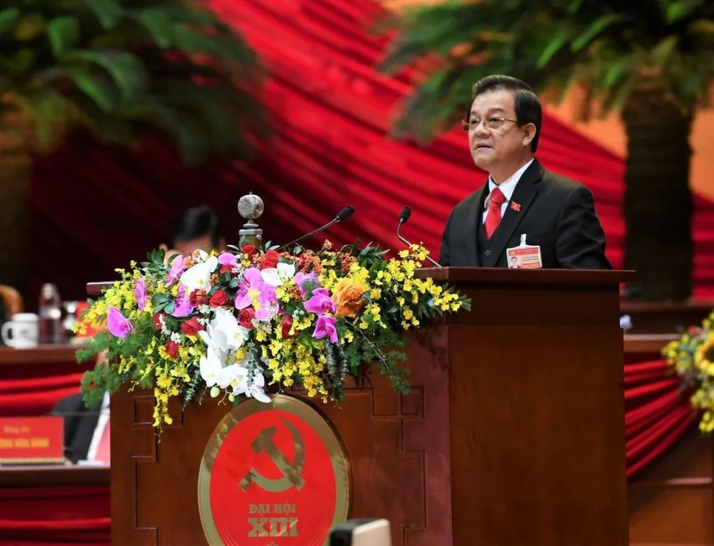 Phó Chánh án thường trực TAND Tối cao Lê Hồng Quang trình bày tham luận tại Đại hội XIII của Đảng sáng 27-1. Ảnh: plo.vn