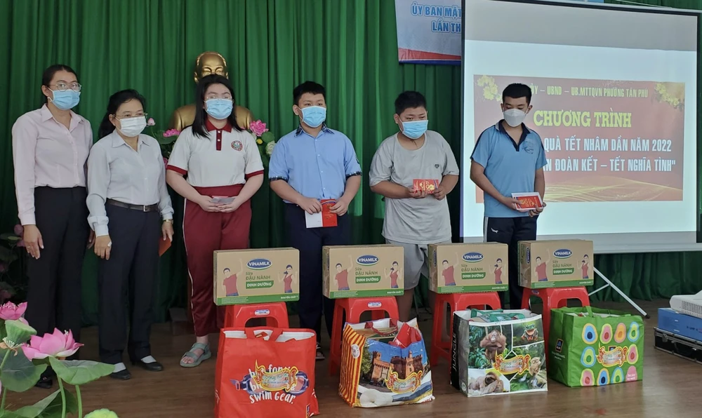 Trao quà tết Nhâm Dần 2020 cho các trẻ em tại quận 7. Ảnh: H.YẾN
