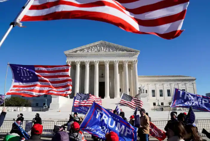 Người ủng hộ Tổng thống Donald Trump tập trung bên ngoài trụ sở Tòa án tối cao ở thủ đô Washington D.C. (Mỹ) ngày 8-12. Ảnh: Erin Scott/REUTERS
